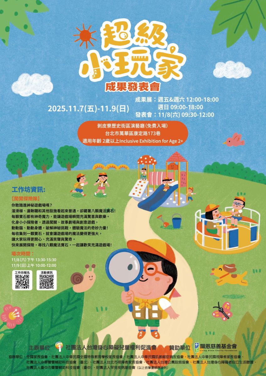 感謝 社團法人台灣身心障礙兒童權利促進會(身障童盟) 用心策畫《超級小玩家成果發表會》,讓大家看見孩子們勇敢探索、用行動改變城市的力量