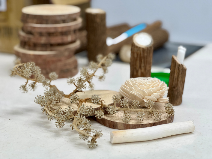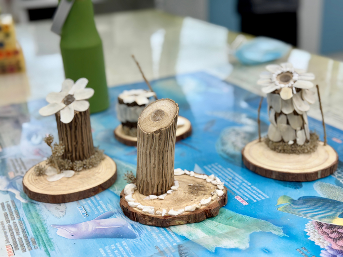 老師收集起來,請孩子利用它的莖變成了筆筒🪵,再加上它的白色小花裝飾🏵️