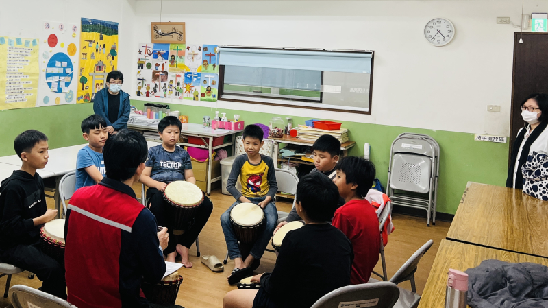 隨後的音樂課,是非洲鼓震撼的節奏。孩子們全神貫注地擊打,將生活壓力與負面情緒在鼓聲中釋放。另一頭,鍵盤班則由通霄國小退休老師進行一對一指導。對於這群多來自單親或新住民家庭的孩子來說,這份平等的才藝探索機會,是通往自信的關鍵鑰匙。